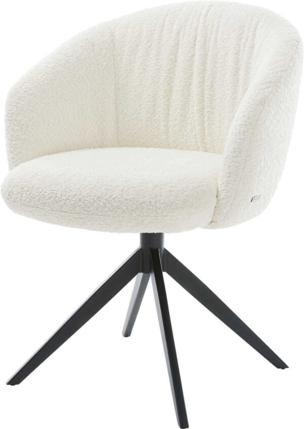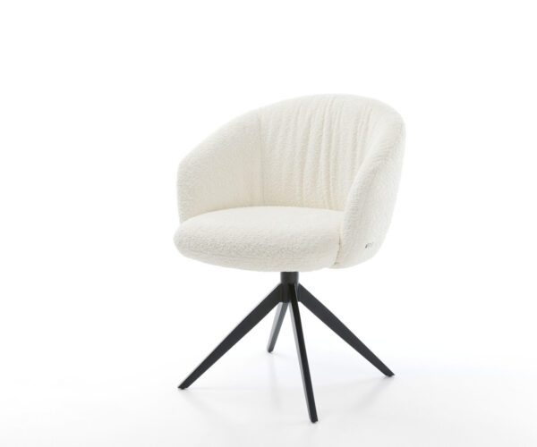 Az elegáns bouclé szövet különösen puha és kellemes a bőrön, ugyanakkor strapabíró és könnyen tisztán tartható. Meleg fehér árnyalatban ragyog, és időtlenül szép hangsúlyt ad minden étkezőnek.
