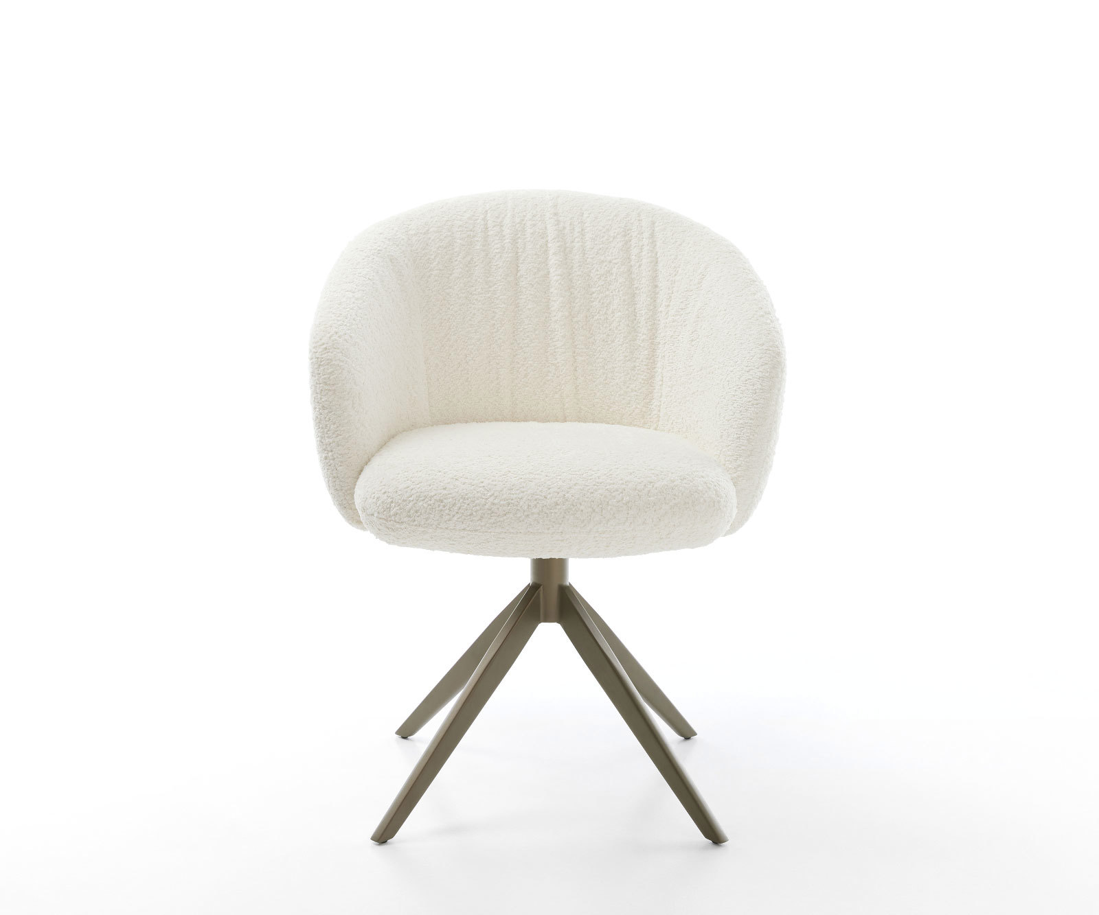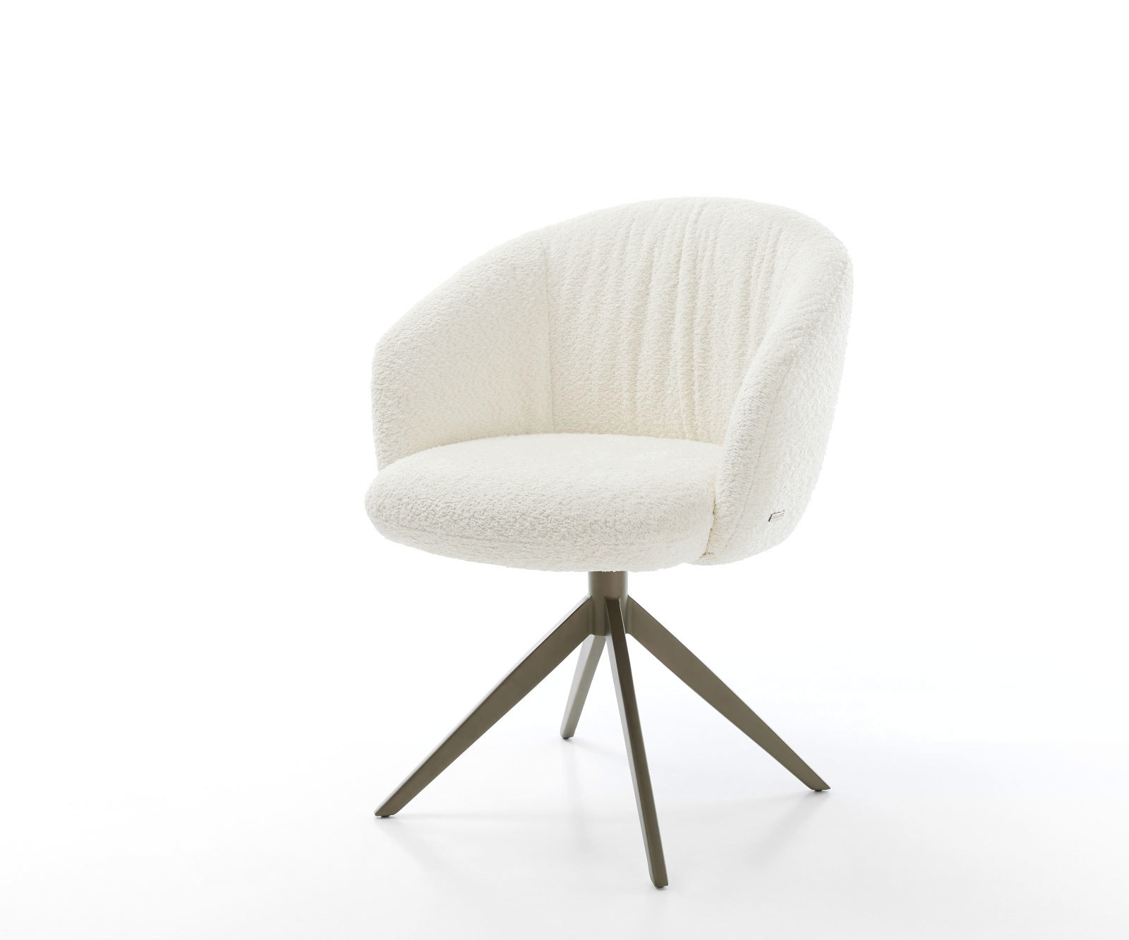 Az elegáns bouclé szövet különösen puha és kellemes a bőrön, ugyanakkor strapabíró és könnyen ápolható. Meleg fehér árnyalatban ragyog, és időtlenül szép hangsúlyt ad bármely étkezőnek.