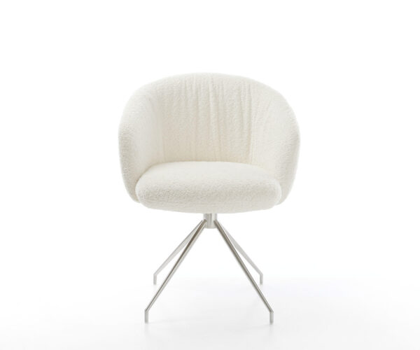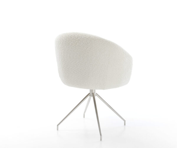Az elegáns bouclé szövet különösen puha és kellemes a bőrnek, ugyanakkor strapabíró és könnyen tisztán tartható. Meleg fehér árnyalatban ragyog, és minden étkezőben időtlenül szép hangsúlyokat teremt.