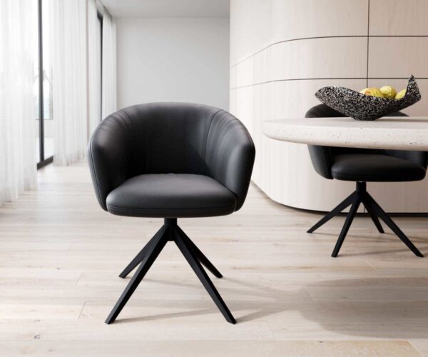 Caja étkezőszék karfákkal valódi bőr fekete – DELIFE szék rendszer