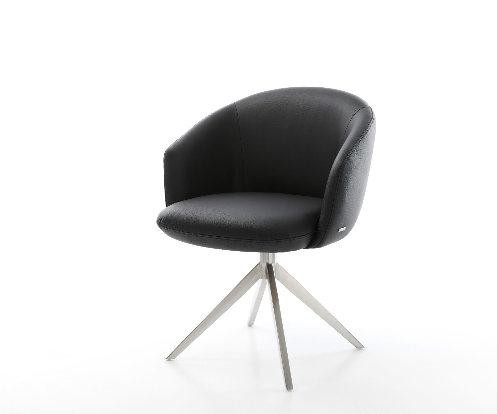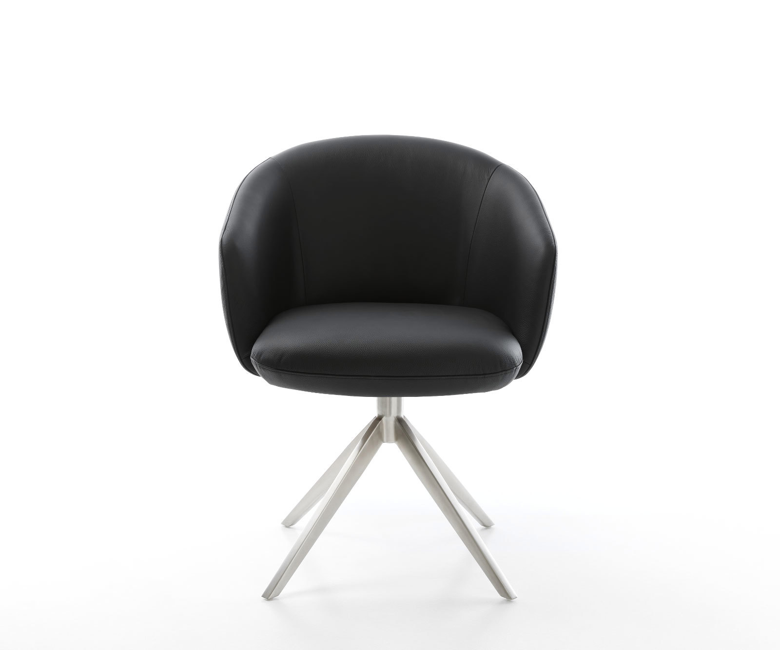 Étkezőszék Caja-Flex karfás valódi bőr fekete kereszt láb széles rozsdamentes acél 360° forgatható hintamechanizmus zsákrugós matraccal