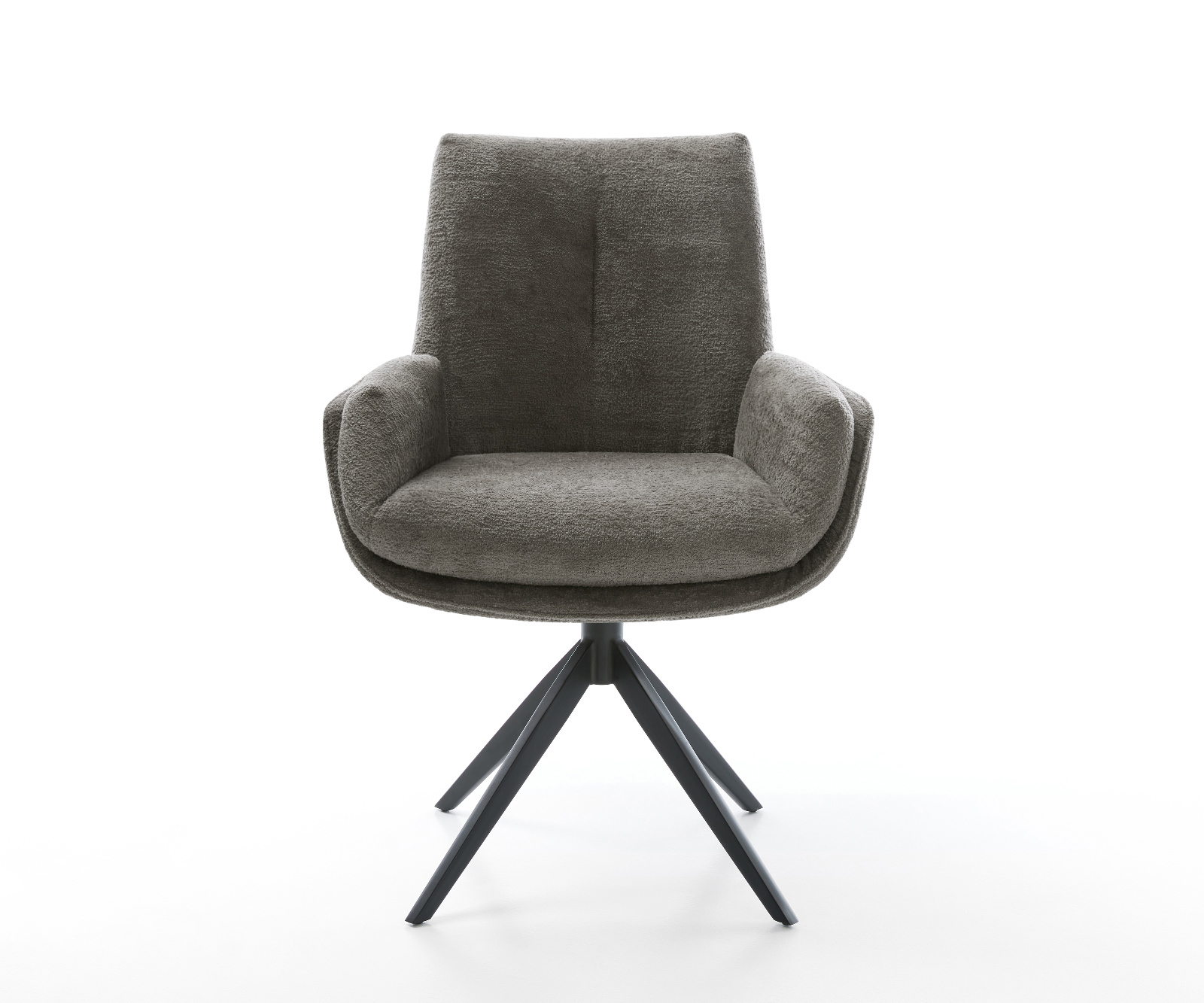 Étkezőszék Clea-Flex bouclé puha sötét bézs kereszt láb széles fekete 360° forgatható billenő funkció
