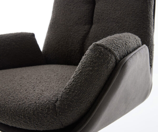 A különleges kereszt láb formája lágyan kúposan ívelt, lefelé hajló lábakkal, így igazi figyelemfelkeltő darab. Négy lábának köszönhetően a lábazat különösen stabil, a praktikus visszahúzó funkció és a 180 fokos forgathatóság pedig páratlan kényelmet nyújt.