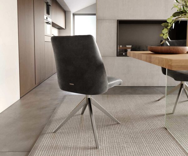 Étkezőszék Elso-Flex mikroszálas antracit vintage kereszt láb széles rozsdamentes acél 360° forgatható zsákrugós