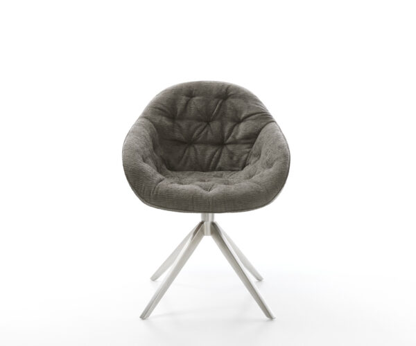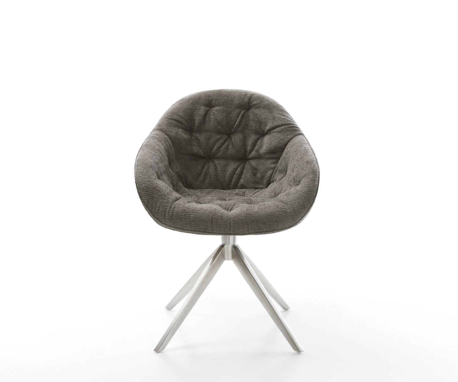 Ez az étkezőszék kiváló minőségű bouclé huzattal készült meleg sötét bézs (schlamm) árnyalatban. A finom struktúra és a nyugodt szín modern, otthonos kisugárzást kölcsönöz a bútor darabnak – ideális az étkezőbe vagy az olvasósarokba.