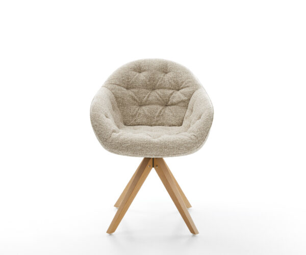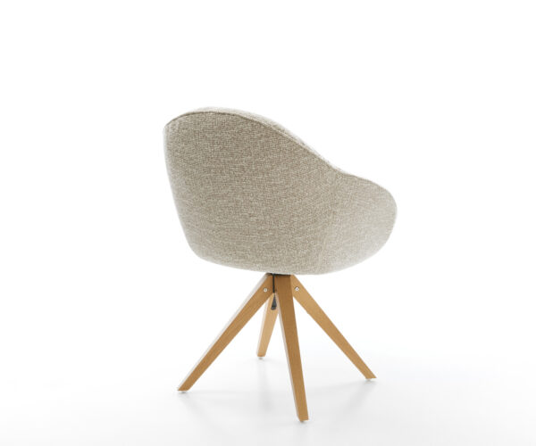 A feltűnő kereszt láb klasszikus megjelenést kölcsönöz négy szögletes lábbal, természetes könnyedséggel. Akár 180 fokban forgatható, és praktikus visszahúzó funkcióval rendelkezik, amely kellemesebbé teszi a beszélgetést az étkezőasztalnál.