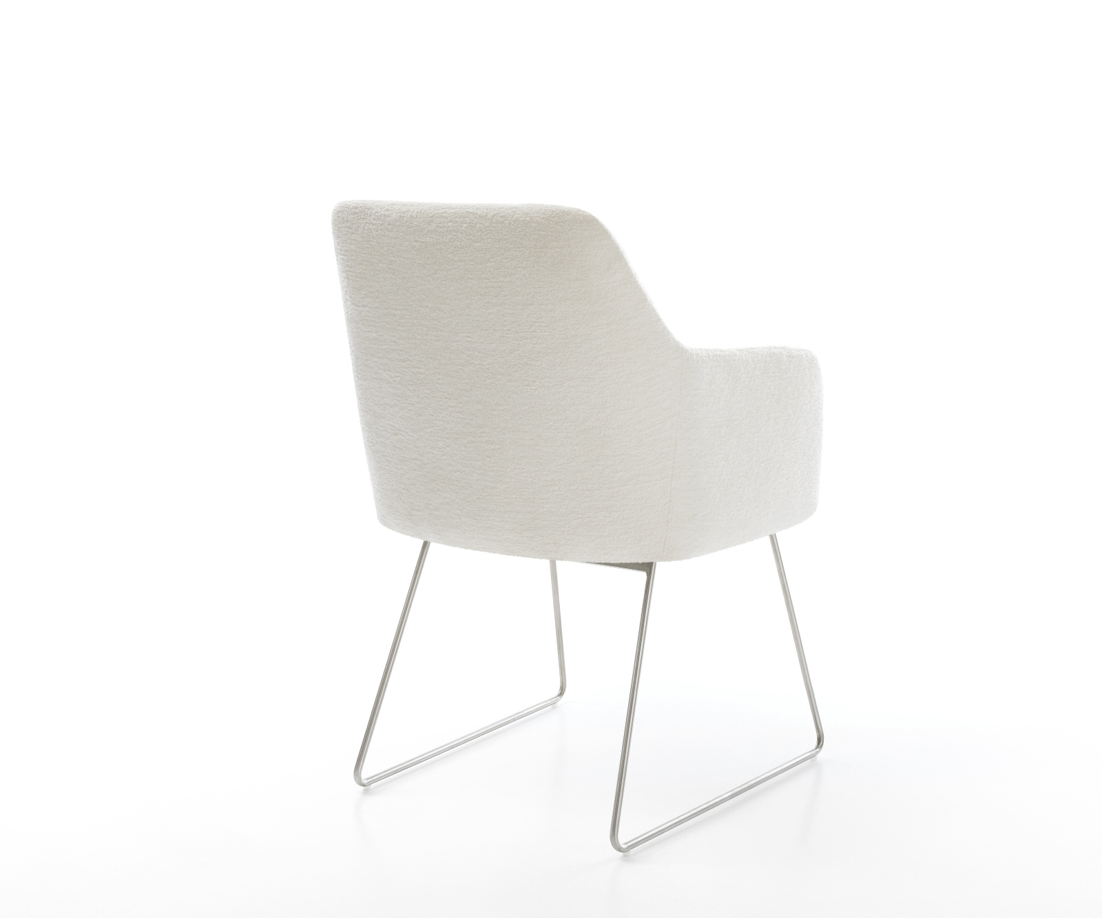 Klasszikus formájával és végigfutó karfáival a Greg étkezőszék nemcsak rendkívül elegáns, hanem különösen kényelmes és hátbarát is. A háttámla finom, függőleges steppelése stílusosan egészíti ki ennek az időtlen székalkotásnak a nemes összhatását.