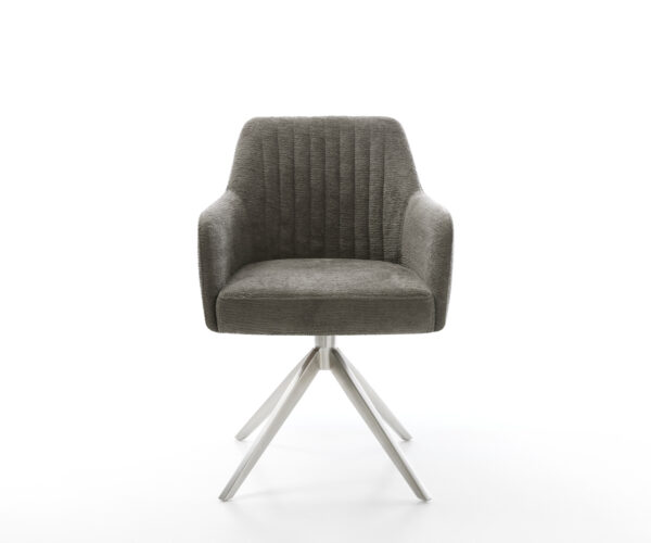 Étkezőszék Greg-Flex bouclé puha sötét bézs kereszt láb széles rozsdamentes acél 360° forgatható billenő zsákrugó