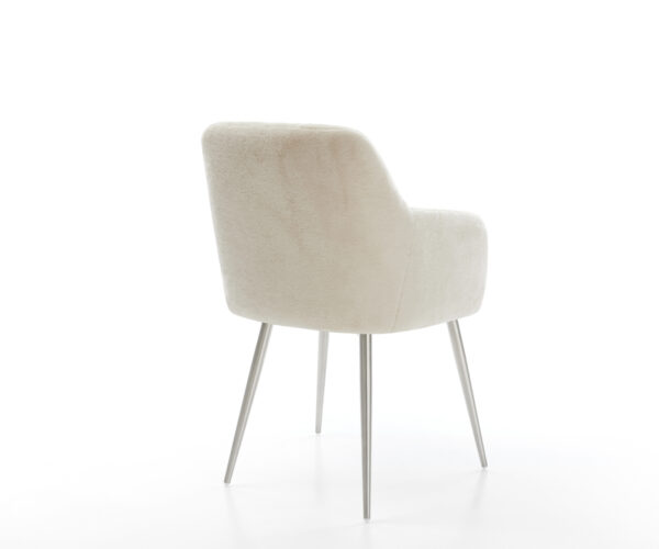 A puha krémfehér plüss huzat különösen elegáns kisugárzást kölcsönöz a széknek. A lágy tapintás a legmagasabb üléskomfortot nyújtja – tökéletes modern étkező- és nappali terekhez, ahol minőségi berendezés található.