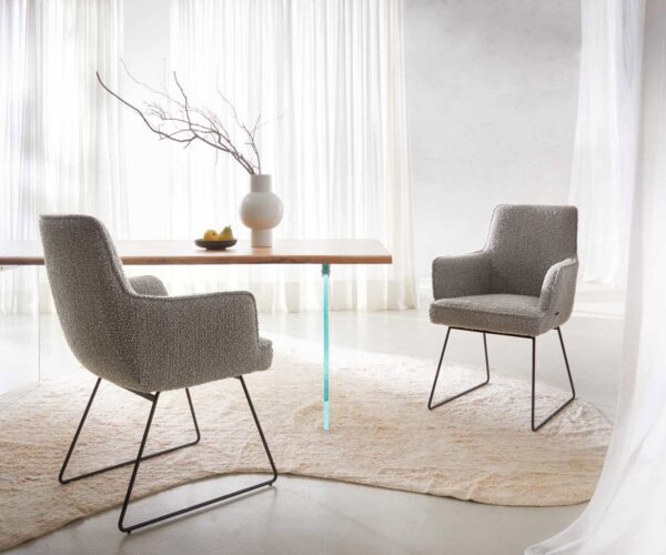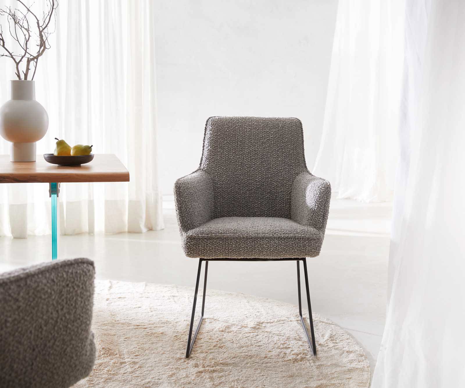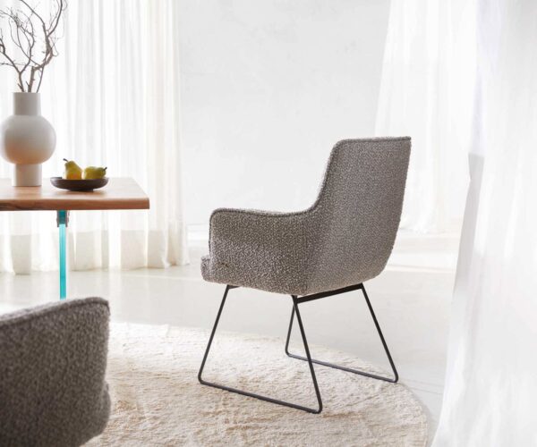 Heira étkezőszék karfával bouclé ezüstszürke – DELIFE szék rendszer