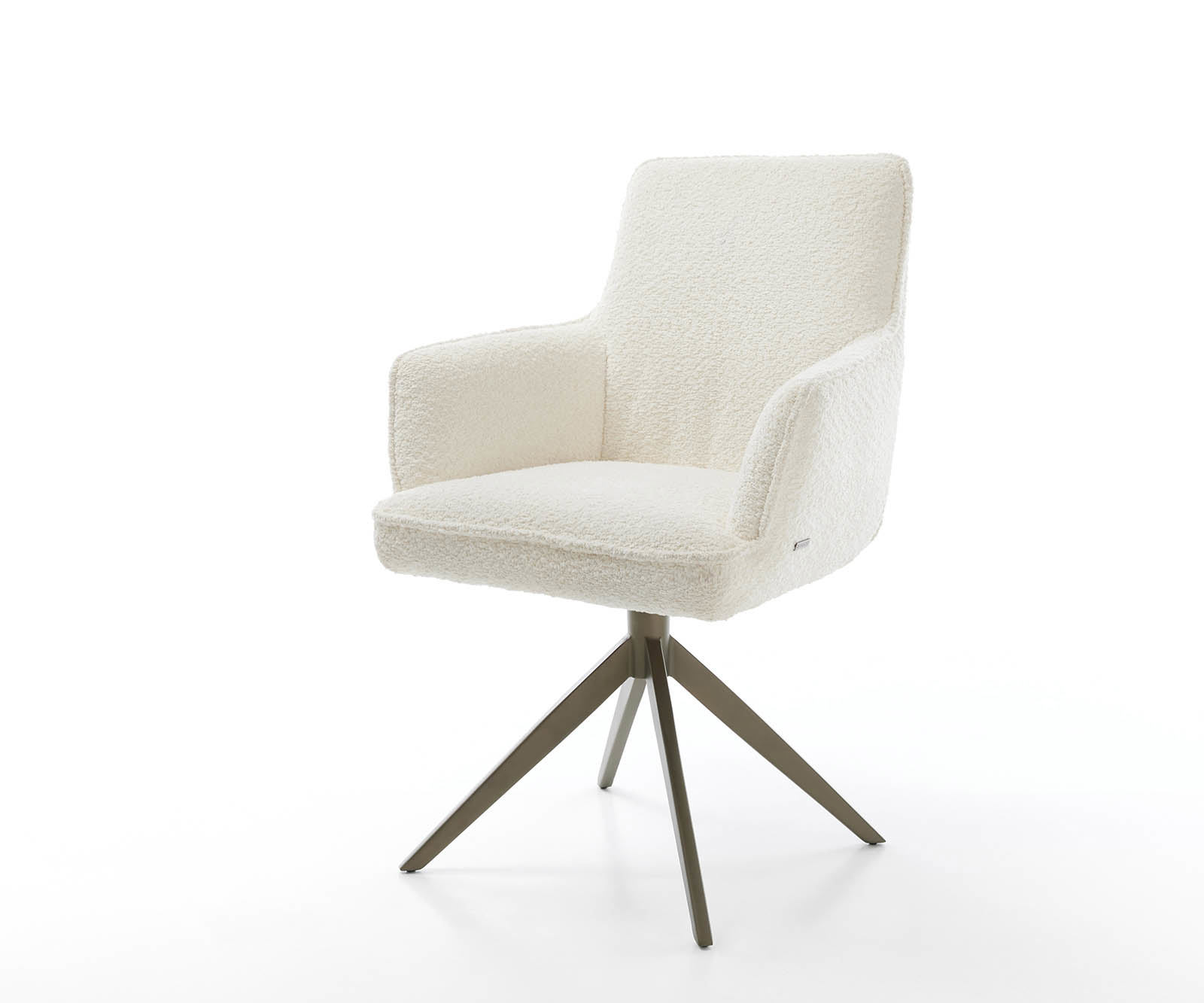 Étkezőszék Heira-Flex karfás bouclé fehér kereszt láb széles titán effekt felület 360° forgatható zsákrugós