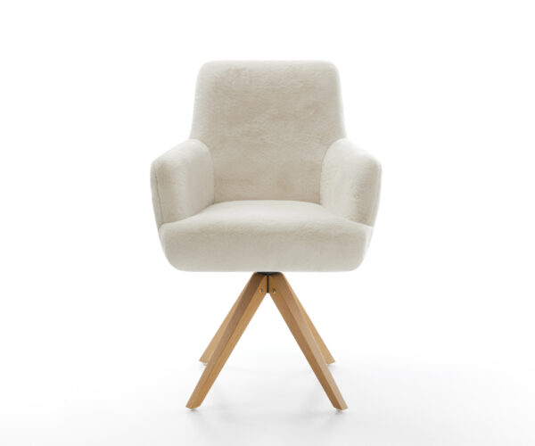 Étkezőszék Heira-Flex karfás plüss kordbársony krémfehér fa láb szögletes természetes 180° forgatható zsákrugós