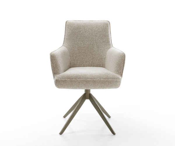 Étkezőszék Heira-Flex karfás szövetszövet puha bézs kereszt láb széles titánszínű hatás 360°-ban forgatható billenő zsákrugós