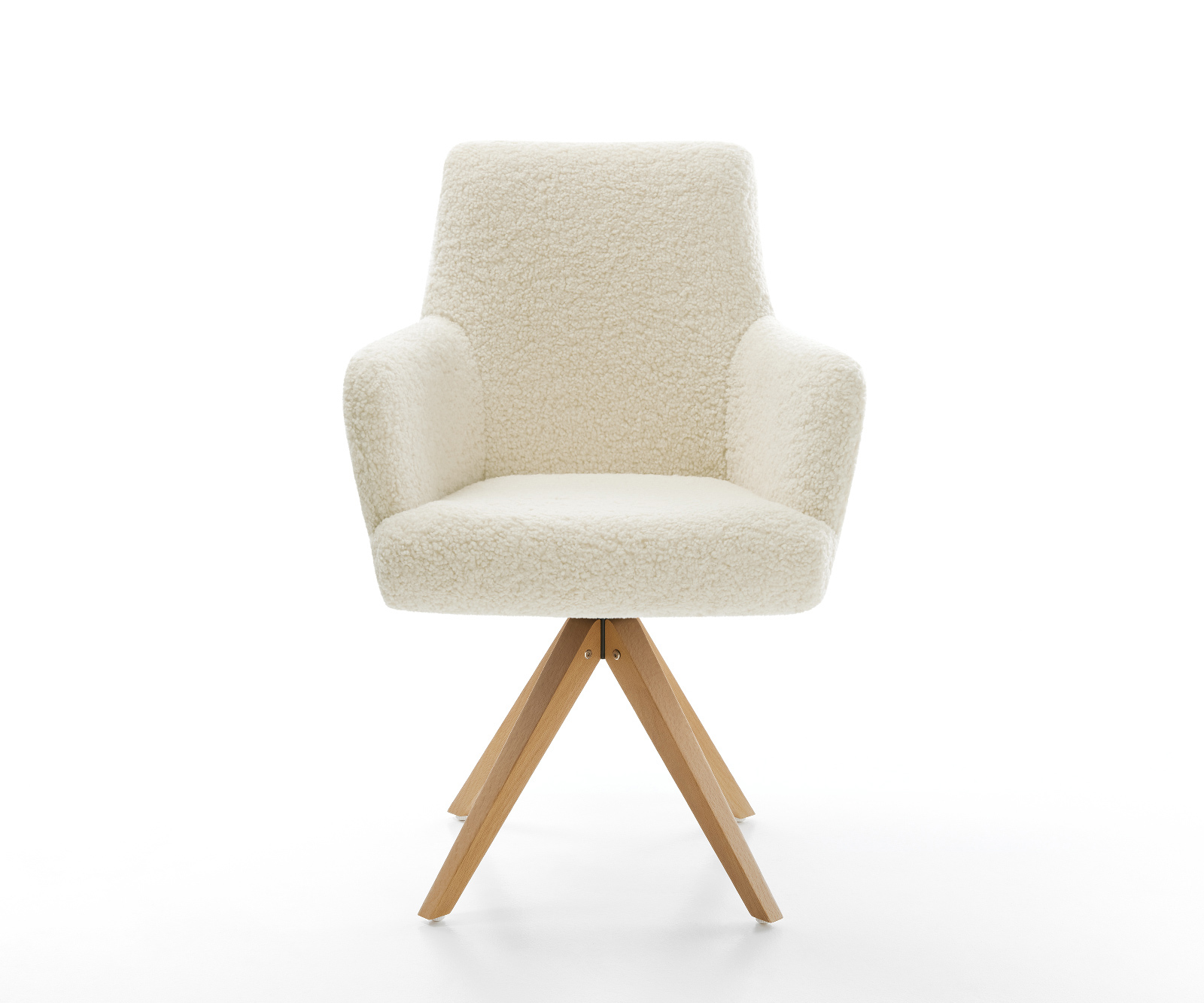 Étkezőszék Heira-Flex karfás teddy szövet bézs fa láb szögletes természetes 180° forgatható zsákrugós