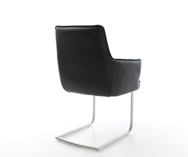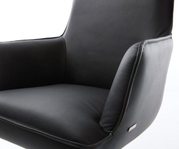 Étkezőszék Heira-Flex karfás valódi bőr fekete étkezőszék kerek rozsdamentes acél zsákrugós