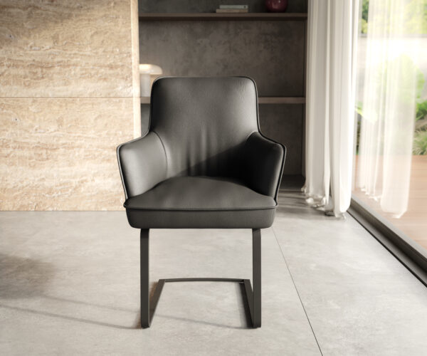 Heira étkezőszék karfákkal valódi bőr fekete – DELIFE szék rendszer