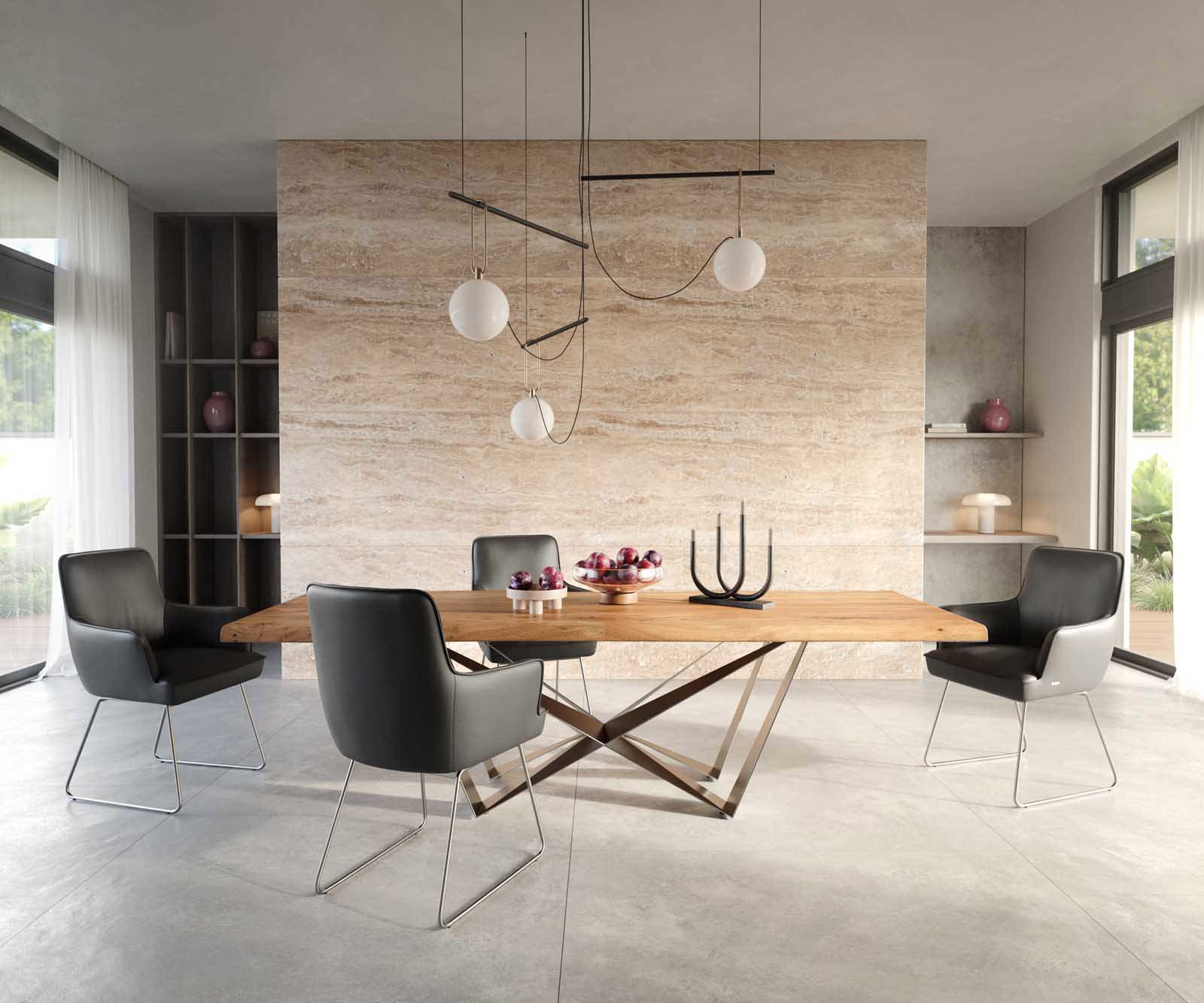 Étkezőszék Heira-Flex karfás valódi bőr fekete vékony lábazat rozsdamentes acél zsákrugós