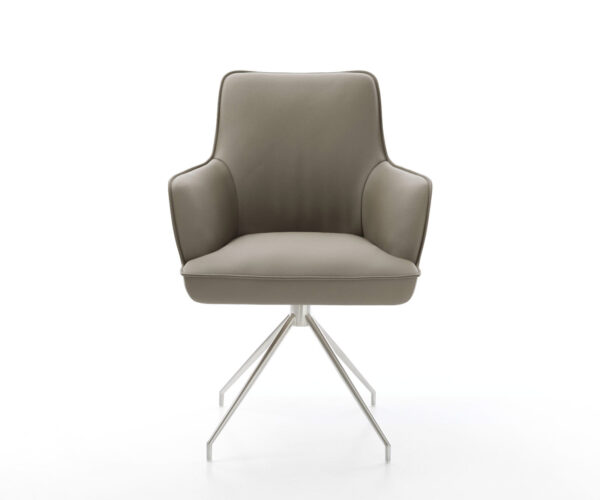 Kiváló minőségű, valódi bőr, stílusos sötét bézs (schlamm) árnyalatban, melyet szürke-barna árnyalatok jellemeznek, teszi az étkezőszéket igazi különlegessé, és elegánsan kifinomult légkört kölcsönöz az étkeződnek.