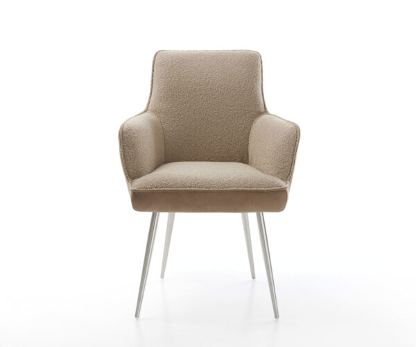 Étkezőszék Heira-Flex karfás vegyes anyagok sötét bézs 4 lábas kúpos rozsdamentes acél zsákrugós