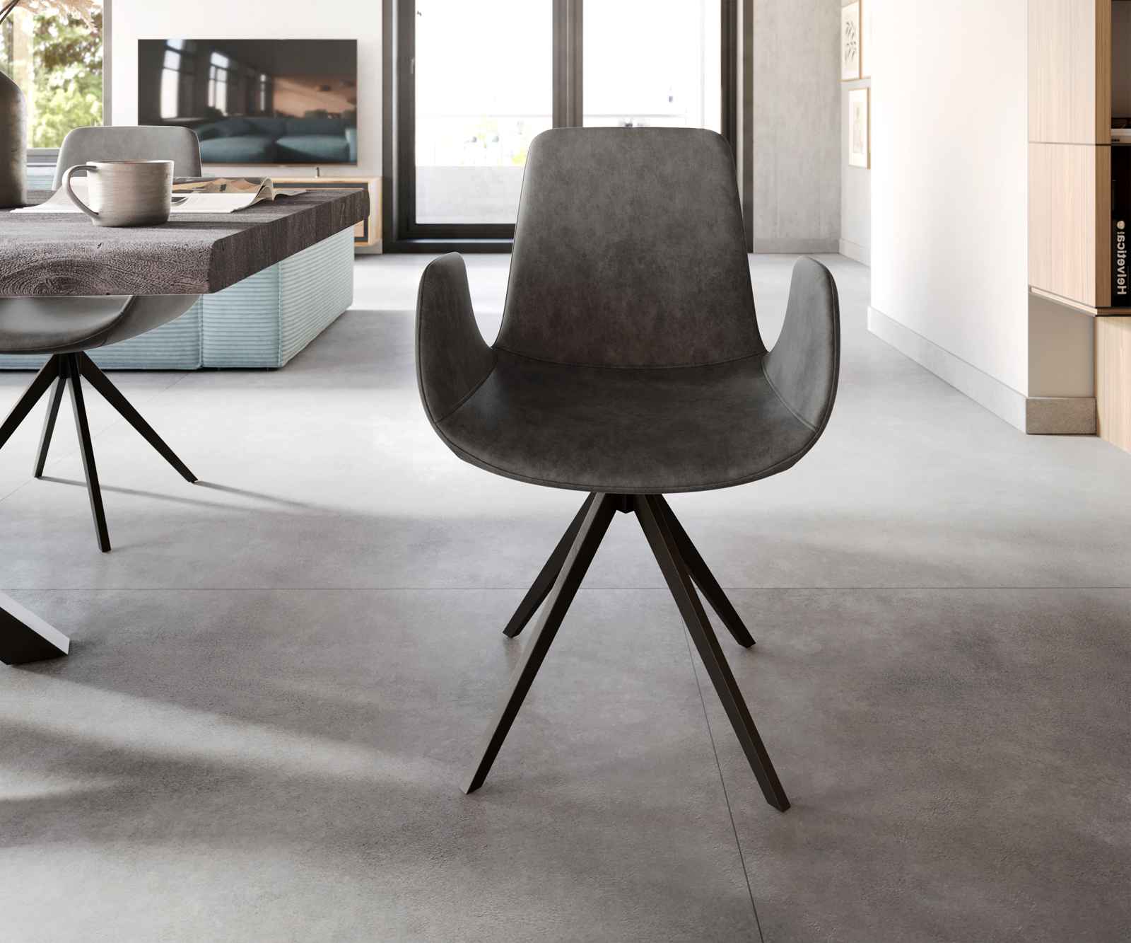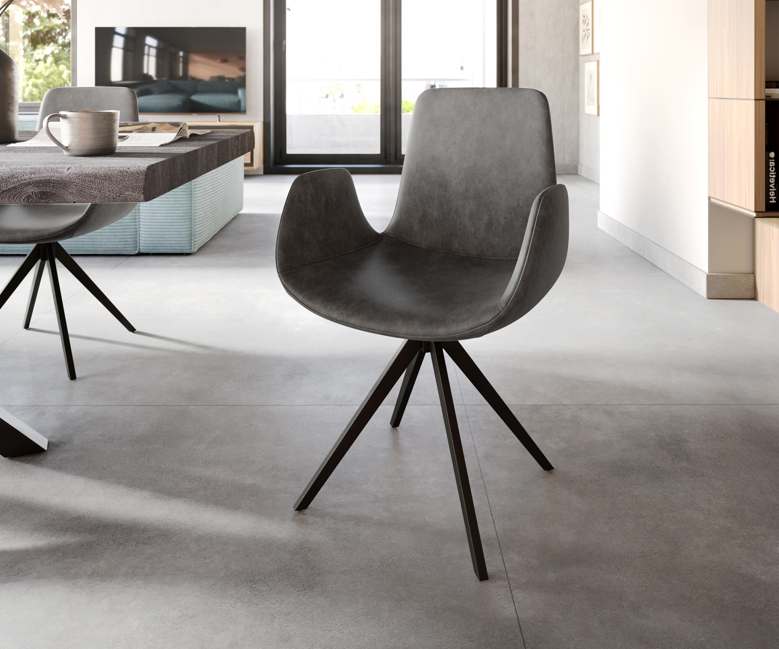 Ilia étkezőszék karfával mikroszálas antracit vintage – DELIFE szék rendszer