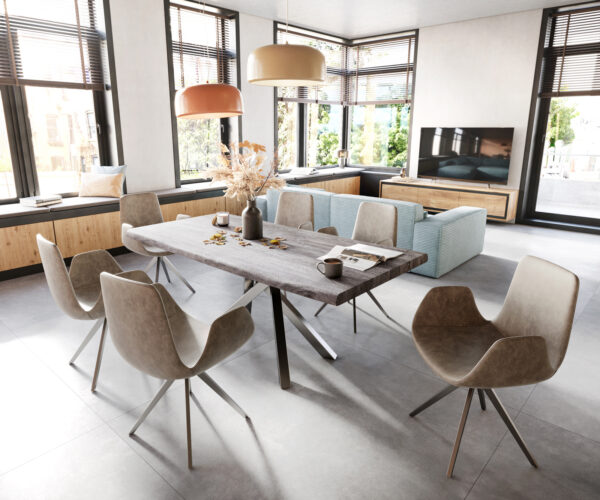 A praktikus visszahúzó funkcióval ellátott okos kereszt láb nemcsak különösen stabil állást biztosít, hanem akár 180 fokban el is forgatható. Felbecsülhetetlen előny, ha egyszerre több asztaltársaságra szeretnénk teljes figyelmünket fordítani.