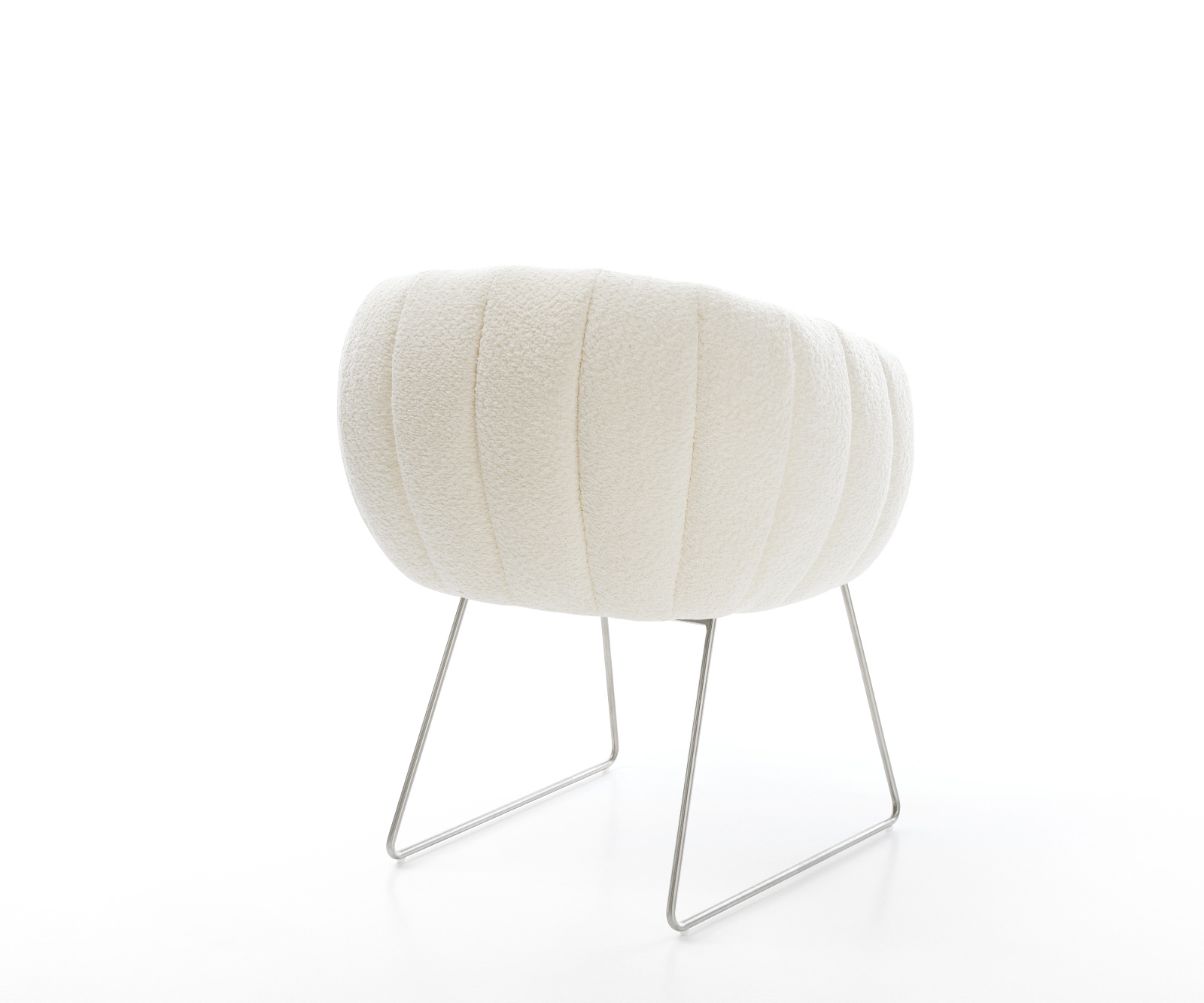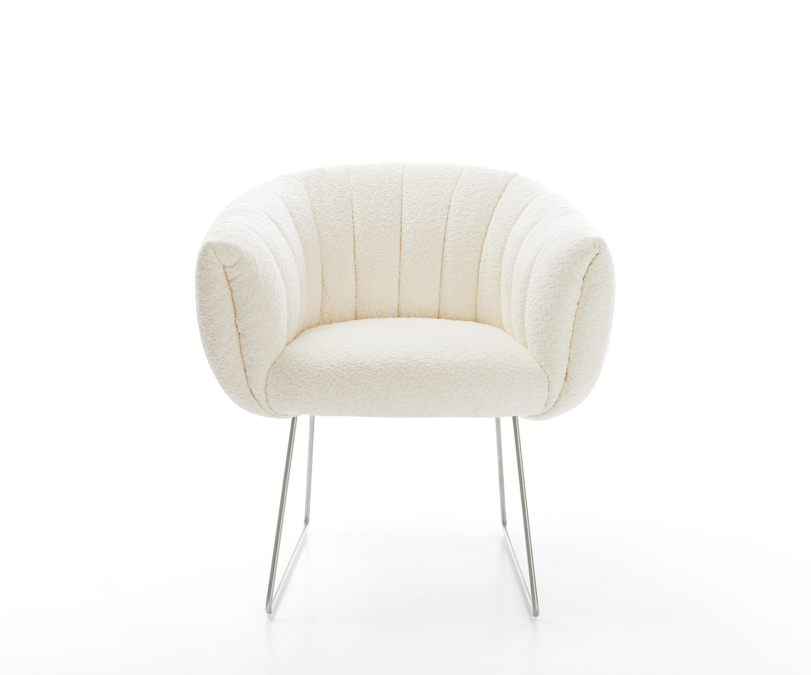 Az elegáns bouclé szövet különösen puha és kellemes a bőrnek, ugyanakkor strapabíró és könnyen ápolható. Meleg fehér árnyalatban ragyog, és időtlenül szép akcentusokat teremt minden étkezőben.