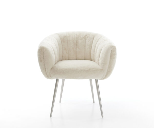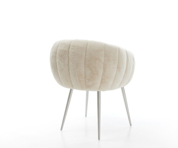 A nemes plüssborítás lágy krémfehér színben különösen elegáns kisugárzást ad a széknek. A puha tapintás a legmagasabb ülési kényelmet nyújtja – tökéletes modern étkező- és nappali terekhez, magas minőségű berendezéssel.