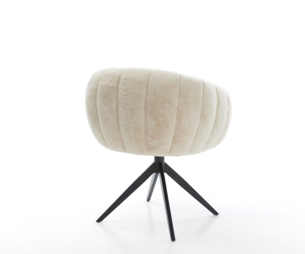 A finom krémfehér plüss huzat különösen elegáns kisugárzást ad a széknek. A puha tapintás a legmagasabb ülési kényelmet nyújtja – tökéletes modern étkező- és nappali terekhez, magas minőségű berendezéssel.