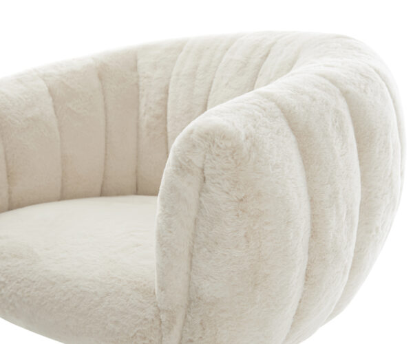 A nemes plüss huzat lágy krémfehér színben különösen elegáns kisugárzást ad a széknek. A puha tapintás a legmagasabb ülési kényelmet nyújtja – tökéletes modern étkező- és nappali terekhez, magas minőségű berendezéssel.