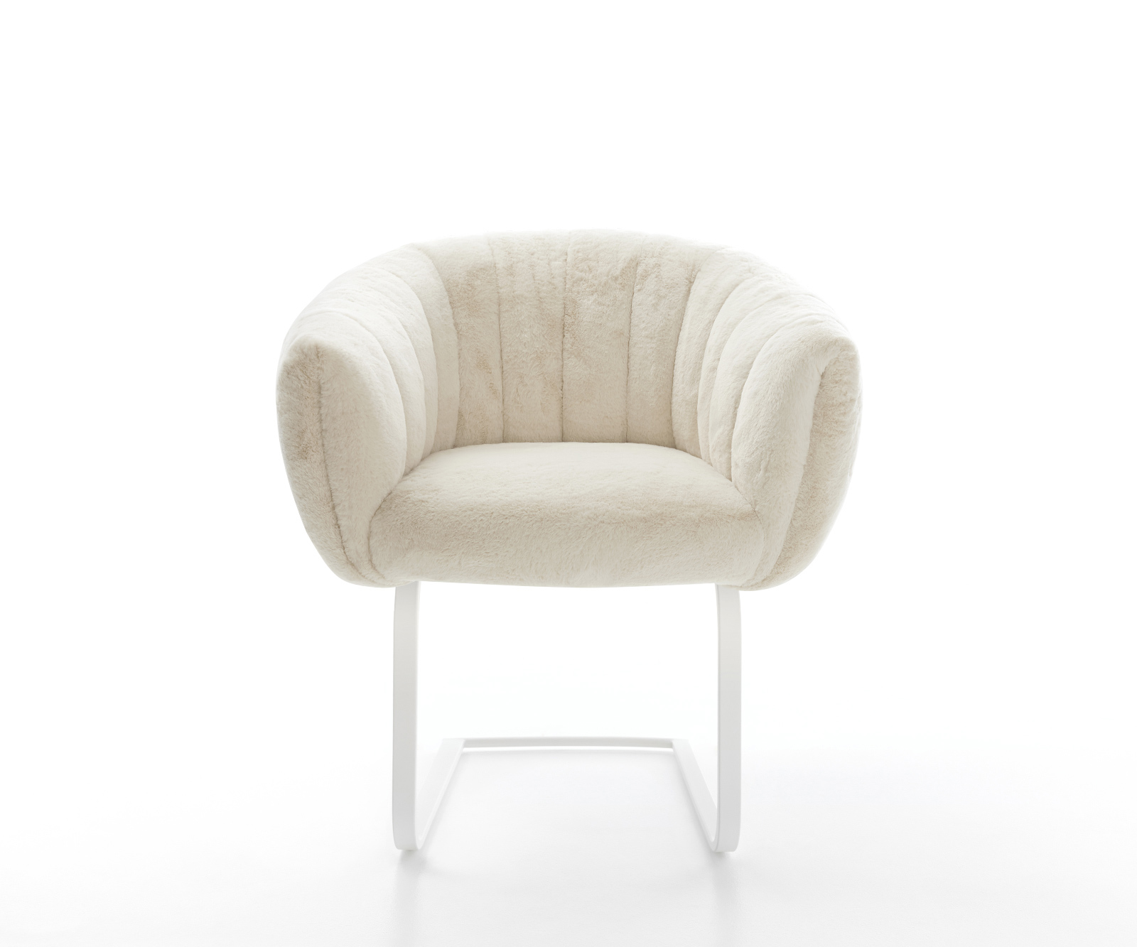 A nemes plüss huzat lágy krémfehér színben különösen elegáns kisugárzást ad a széknek. A puha tapintás a legmagasabb ülési kényelmet nyújtja – tökéletes modern étkezőkbe és nappalikba, magas minőségű berendezéssel.