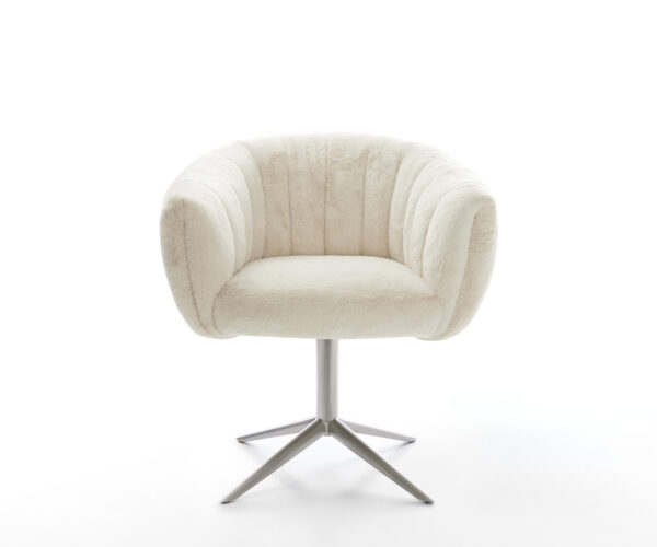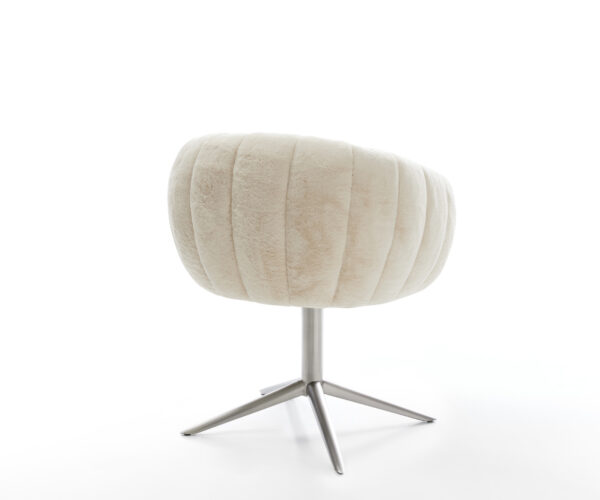 A nemes plüssborítás lágy krémfehér színben különösen elegáns kisugárzást ad a széknek. A puha tapintás a legmagasabb ülőkényelemmel szolgál – tökéletes modern étkező- és nappali terekhez, magas minőségű berendezéssel.