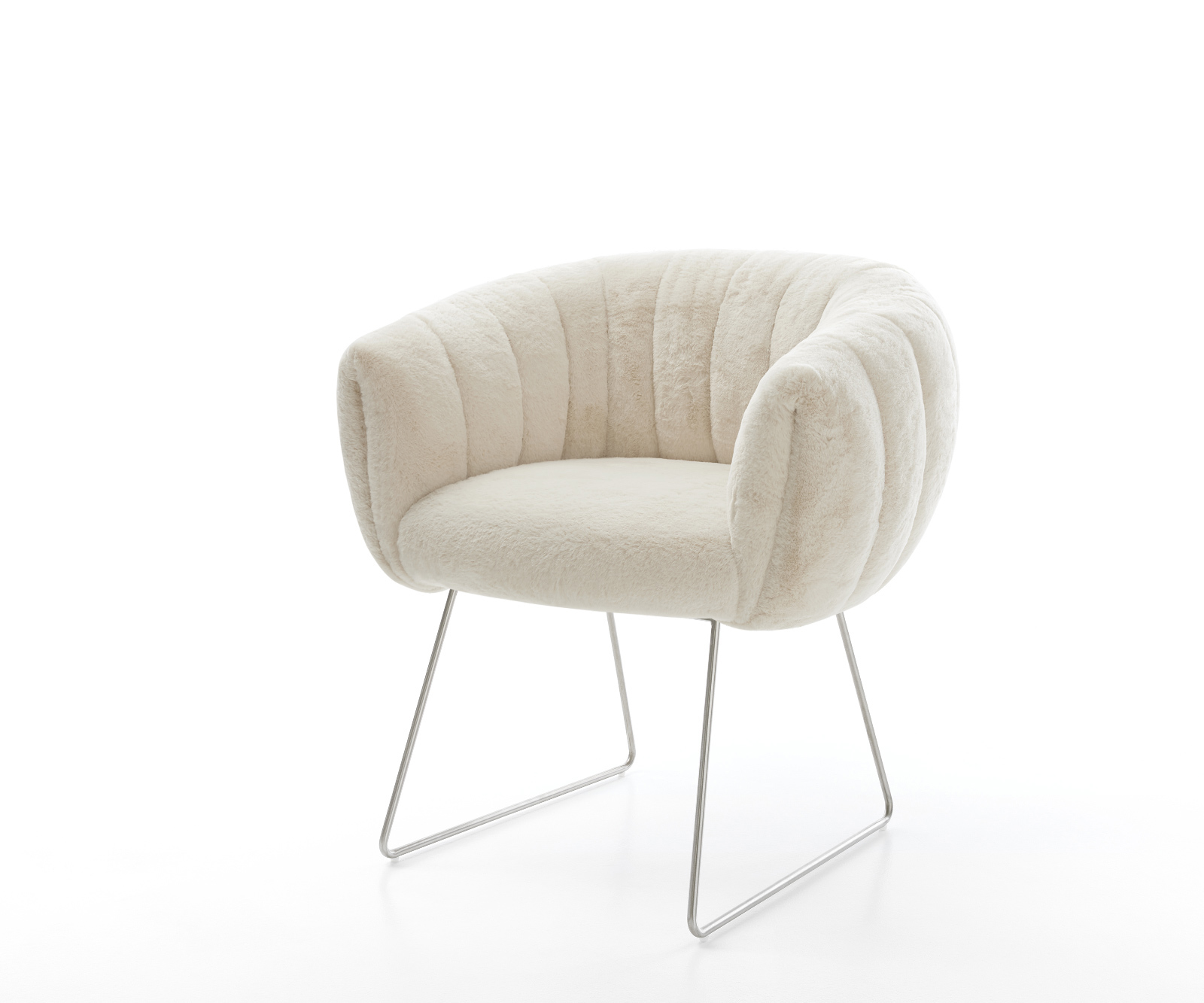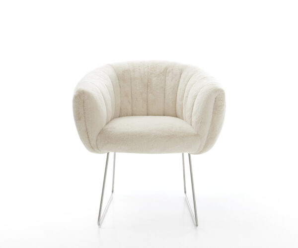 A nemes plüssborítás lágy krémfehér színben különösen elegáns kisugárzást ad a széknek. A puha tapintás a legmagasabb ülési kényelmet nyújtja – tökéletes modern étkező- és nappali terekhez, magas minőségű berendezéssel.