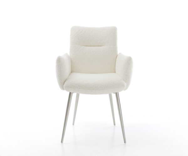 Jova étkezőszék karfával bouclé fehér – DELIFE szék rendszer