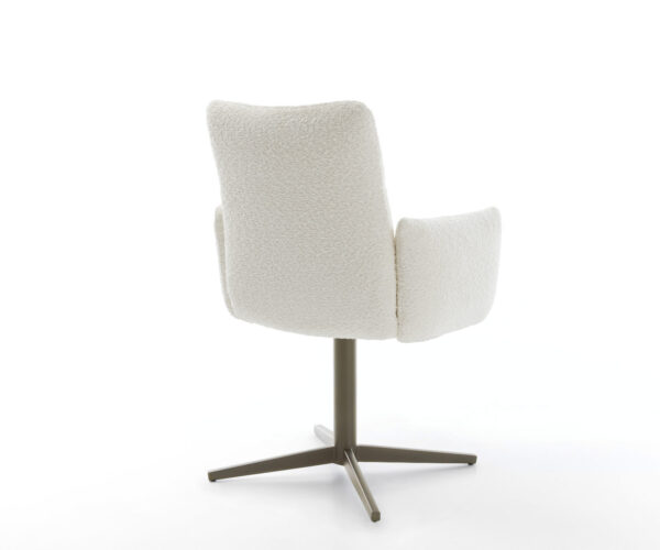 Étkezőszék Jova-Flex karfás bouclé fehér lábkereszt titán effekt felület 360° forgatható zsákrugós