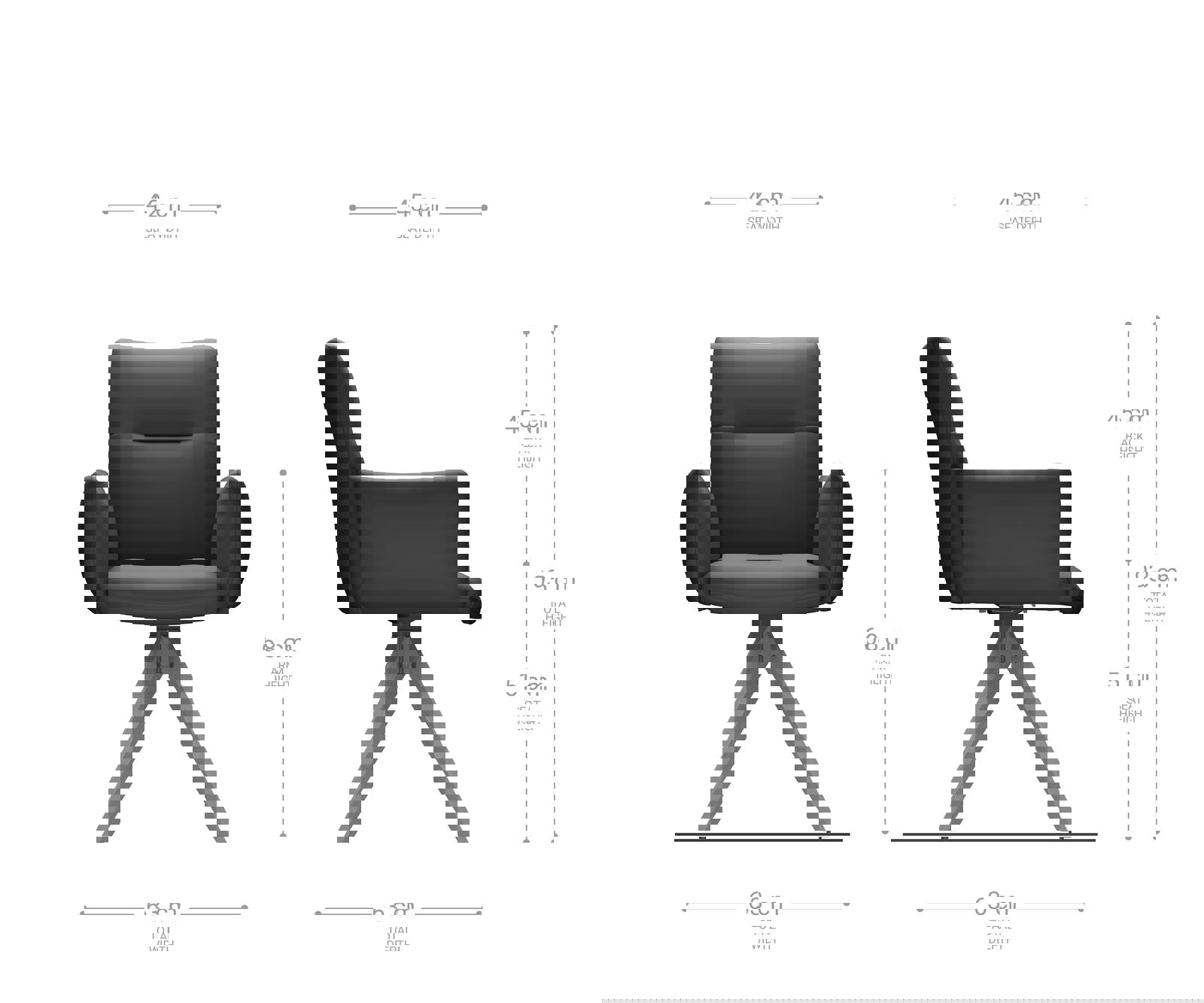 A feltűnő kereszt lábazat a klasszikus megjelenést négy szögletes lábbal természetes könnyedséggel ötvözi. Akár 180 fokban forgatható, és praktikus visszahúzó funkcióval rendelkezik, amely kényelmesebbé teszi a beszélgetést az étkezőasztalnál.