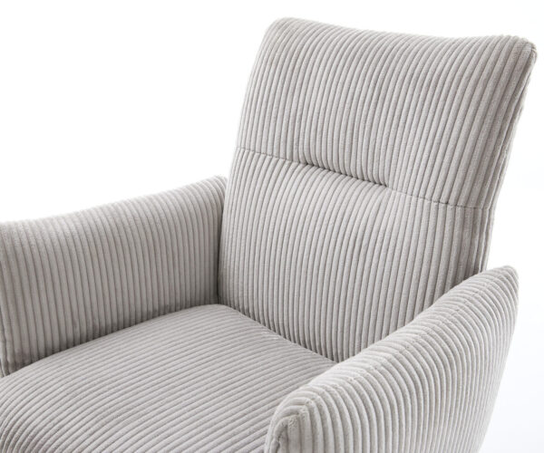 A használt kordbársony anyag különösen trendi, kellemes tapintású, könnyen tisztán tartható, és elegáns ezüstszürke színben tündököl.