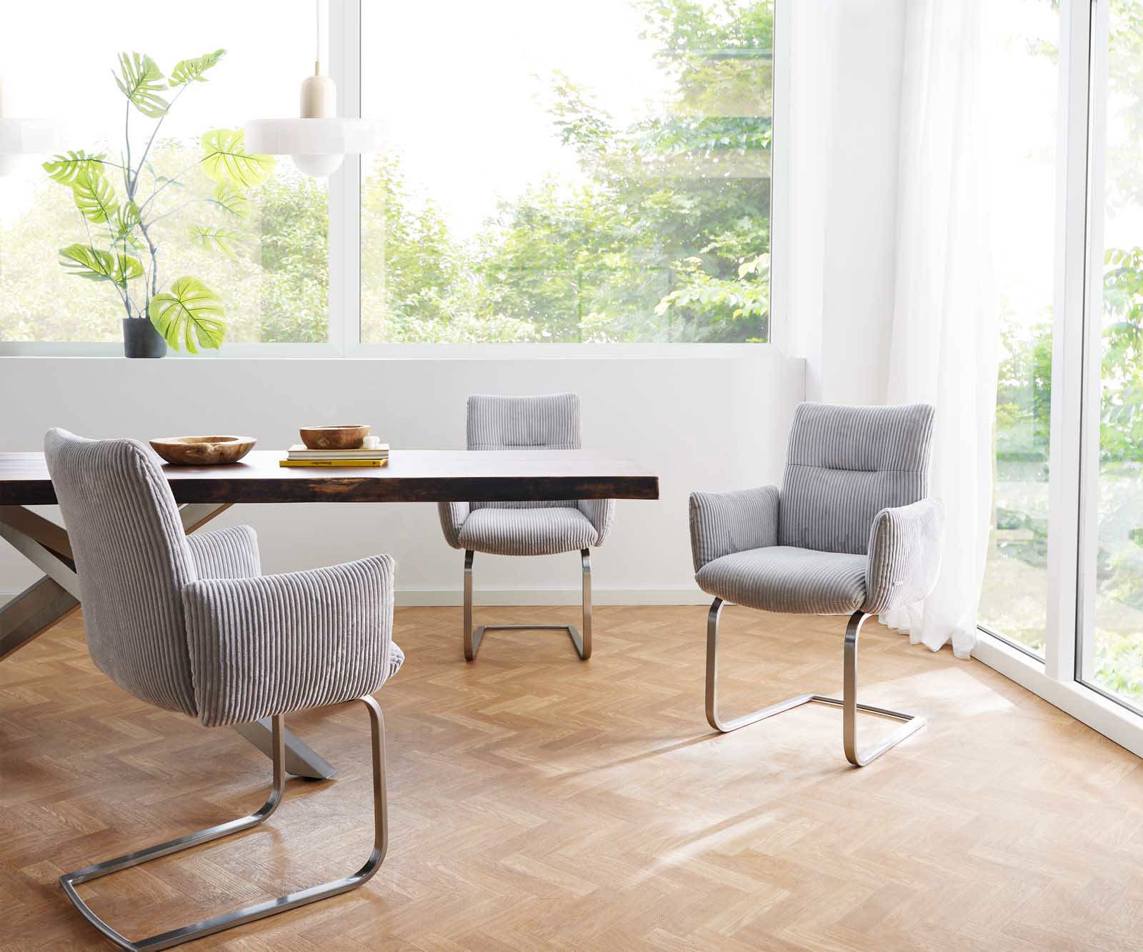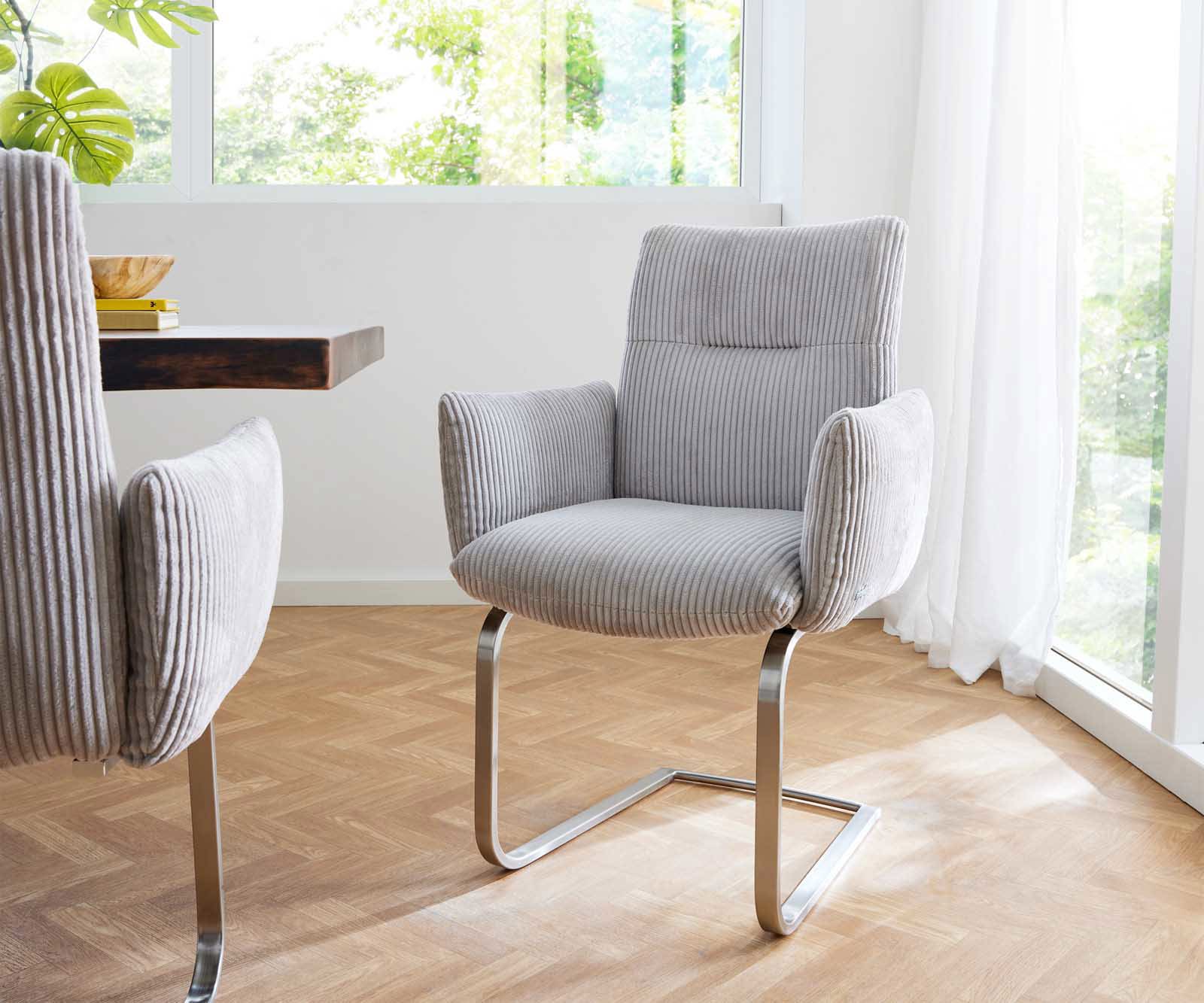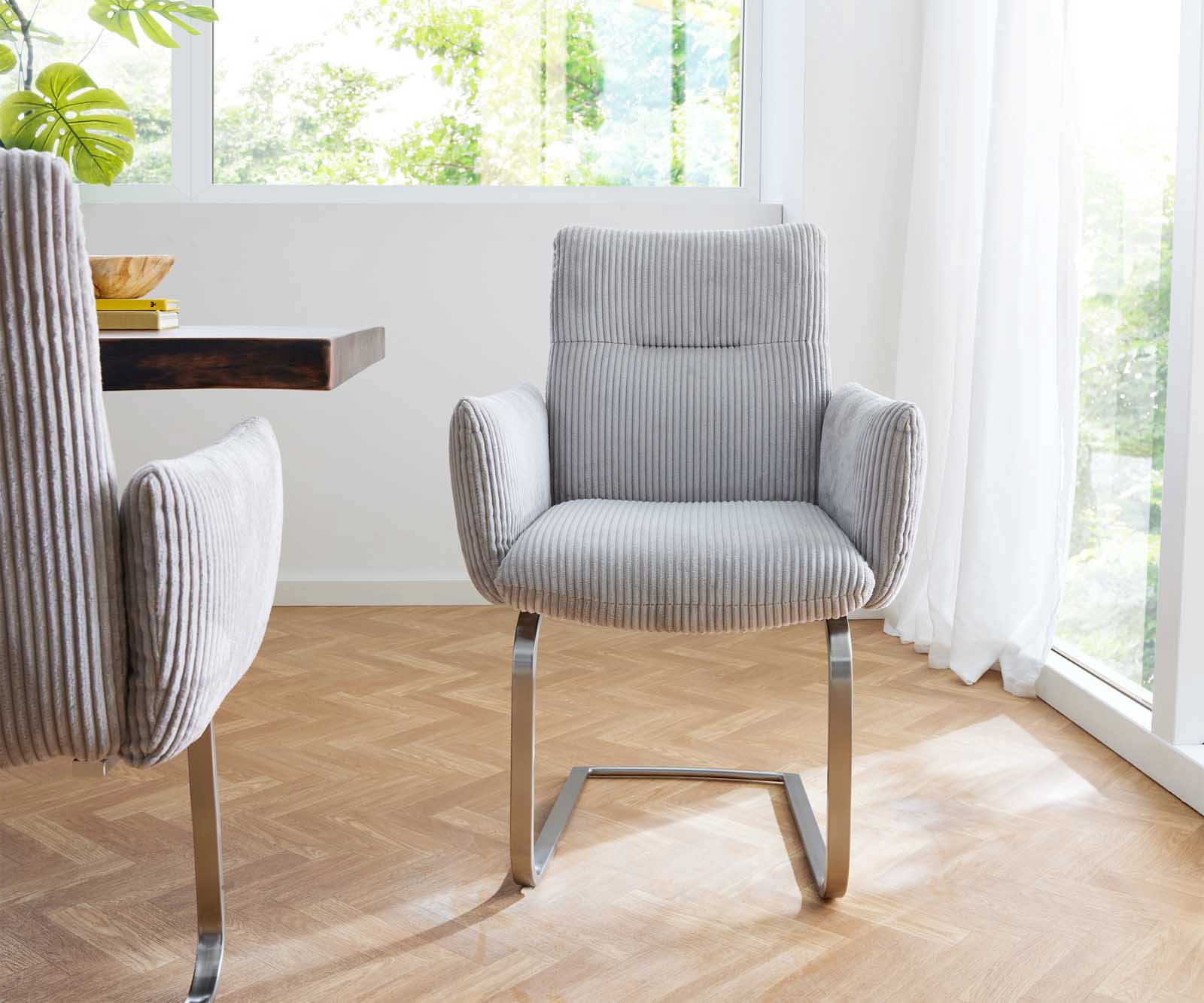 Jova étkezőszék karfával kordbársony ezüstszürke – DELIFE szék rendszer