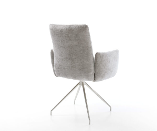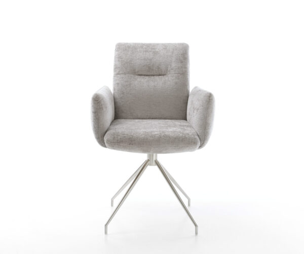 Étkezőszék Jova-Flex karfás mikroszálas ezüstszürke kereszt láb kúpos rozsdamentes acél 180° forgatható zsákrugós