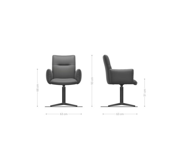 Az elegáns, 360°-ban forgatható lábkereszt kiemeli az étkezőszék nemes karakterét, és további design lendületet ad neki.