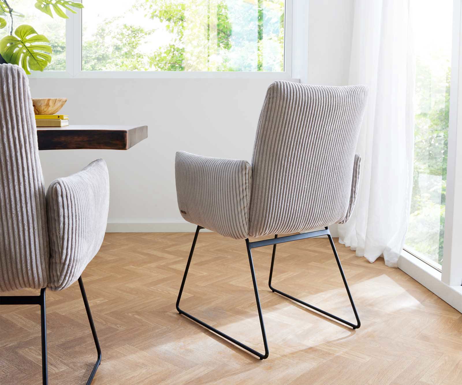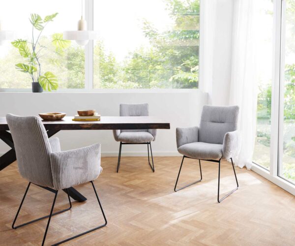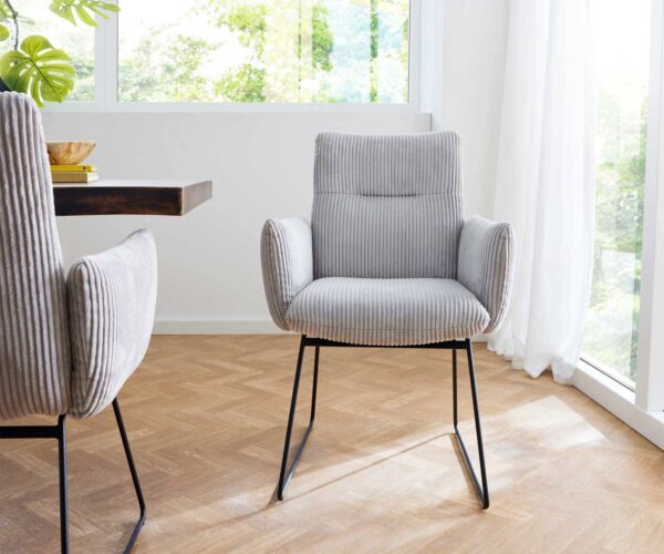 Jova étkezőszék karfával kordbársony ezüstszürke – DELIFE szék rendszer