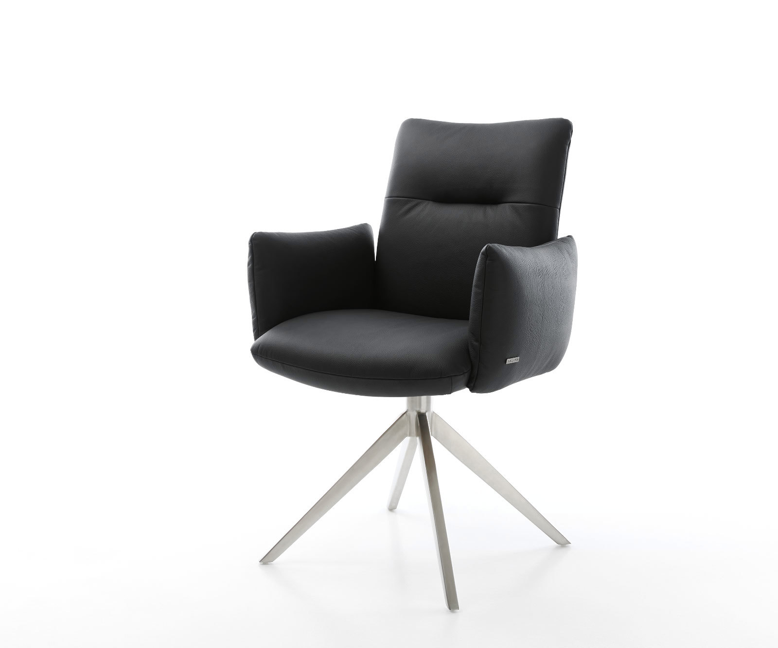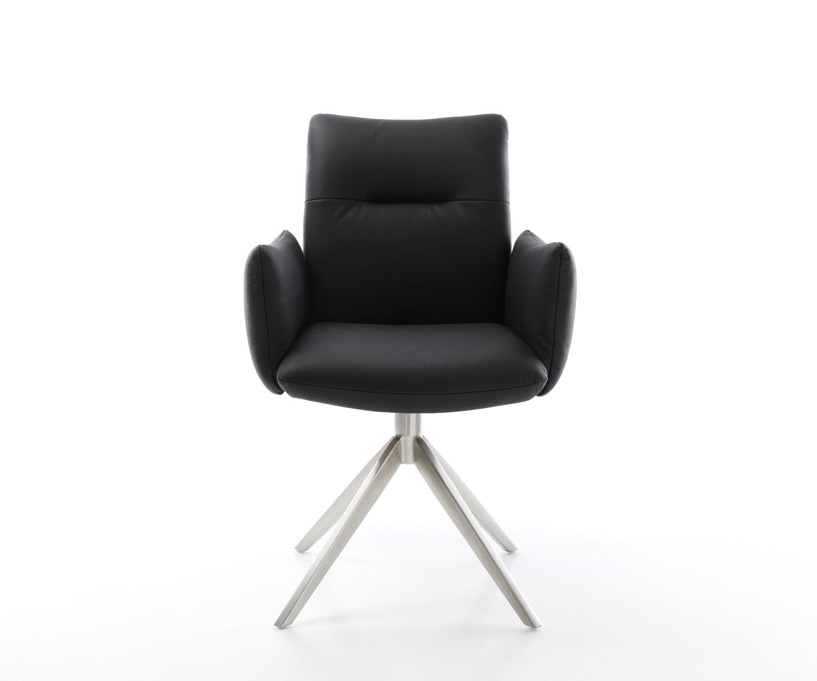 Jova étkezőszék karfával valódi bőr fekete – DELIFE szék rendszer