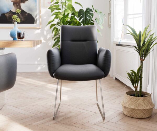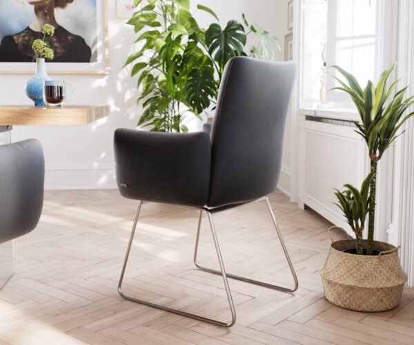 Étkezőszék Jova-Flex valódi bőr fekete karfás vékony lábazat rozsdamentes acél zsákrugós