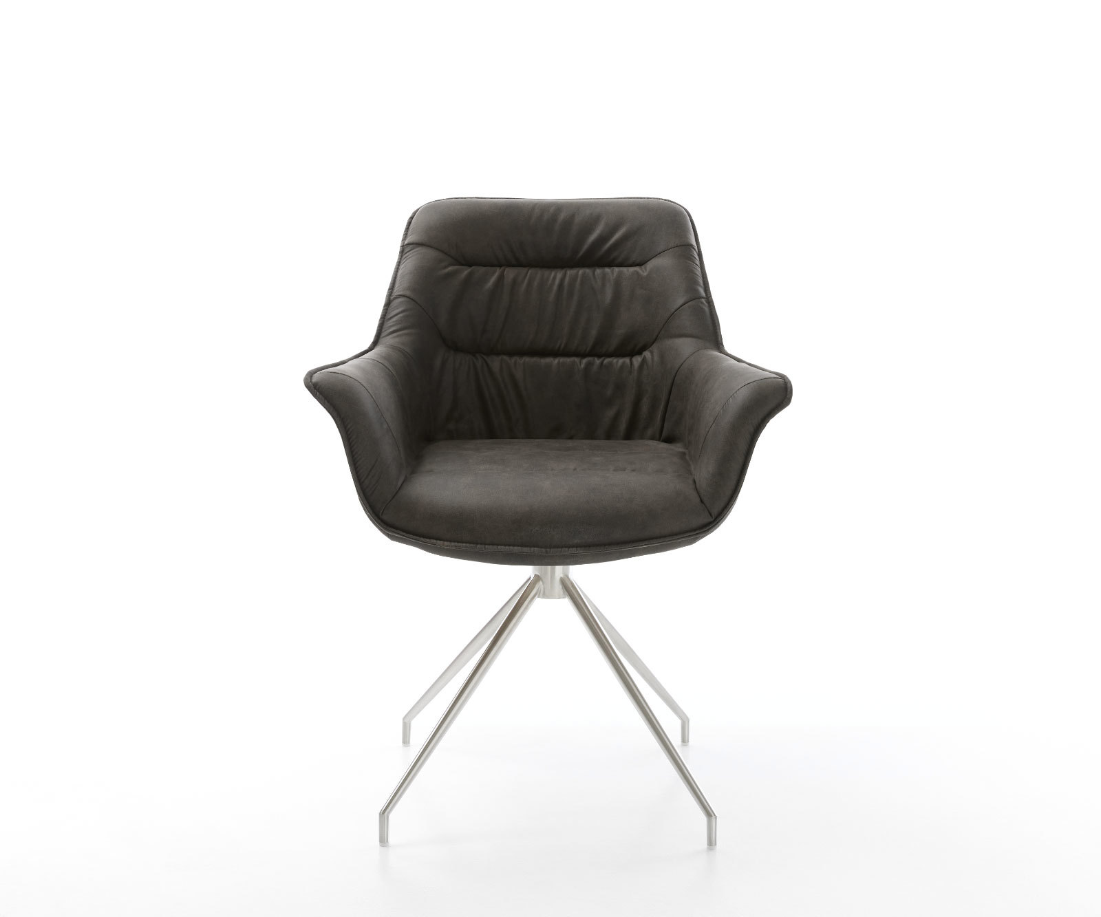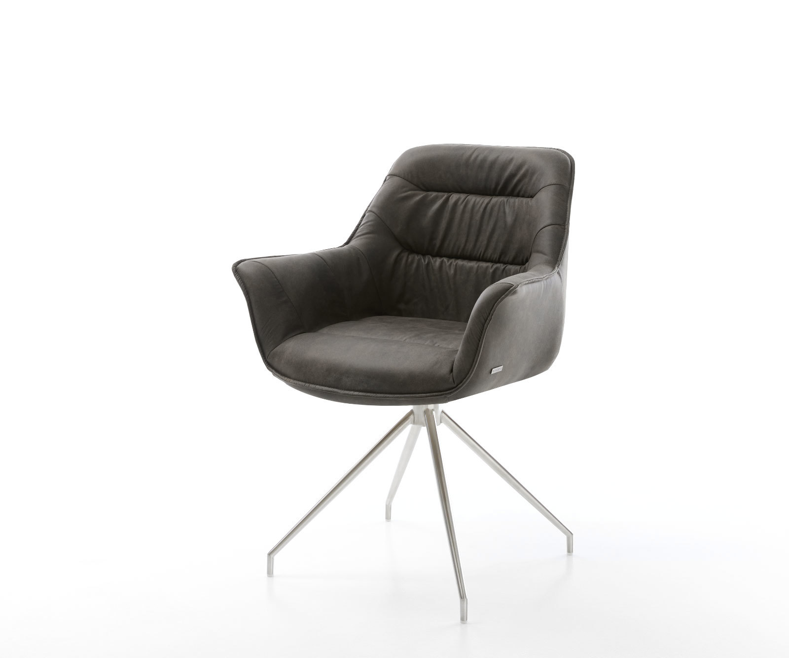 A különleges kereszt láb formája lágyan kúposan ívelt, a lefelé hajló lábakkal együtt pedig igazi látványosság. Négy lábának köszönhetően a lábazat különösen stabil, és a praktikus visszahúzó funkcióval, valamint 180 fokos forgathatósággal páratlan kényelmet biztosít.