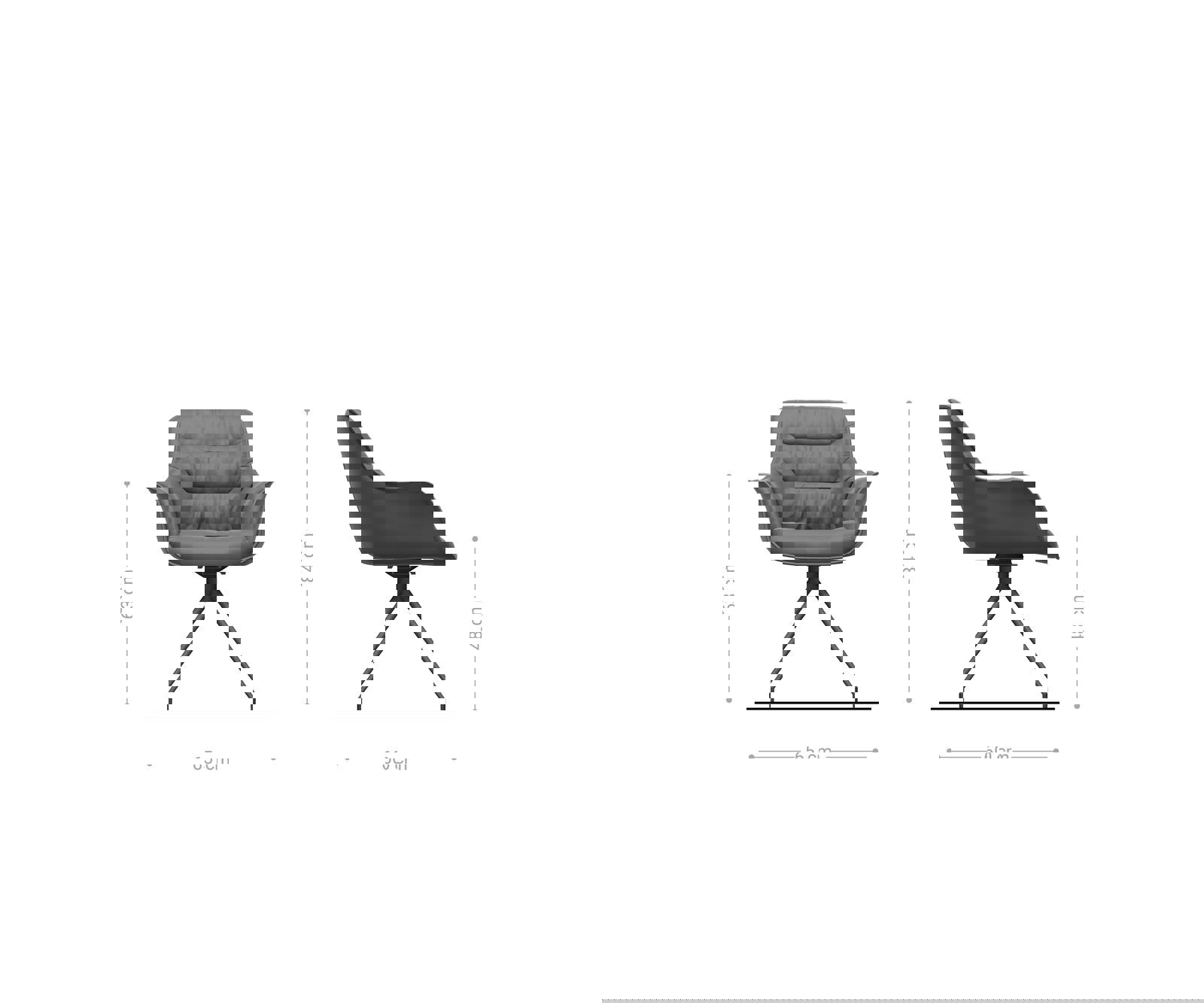 • Kereszt láb négy finoman kialakított lábbal, visszatérítő funkcióval és 180°-os forgathatósággal