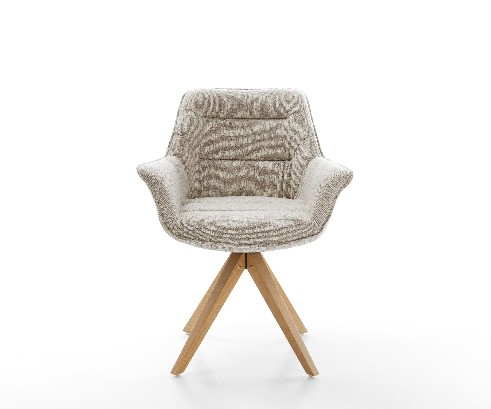 A feltűnő kereszt láb klasszikus megjelenést ötvöz négy szögletes lábbal és természetes könnyedséggel. Akár 180 fokban forgatható, és praktikus visszahúzó funkcióval rendelkezik, amely kellemesebbé teszi a beszélgetést az étkezőasztalnál.