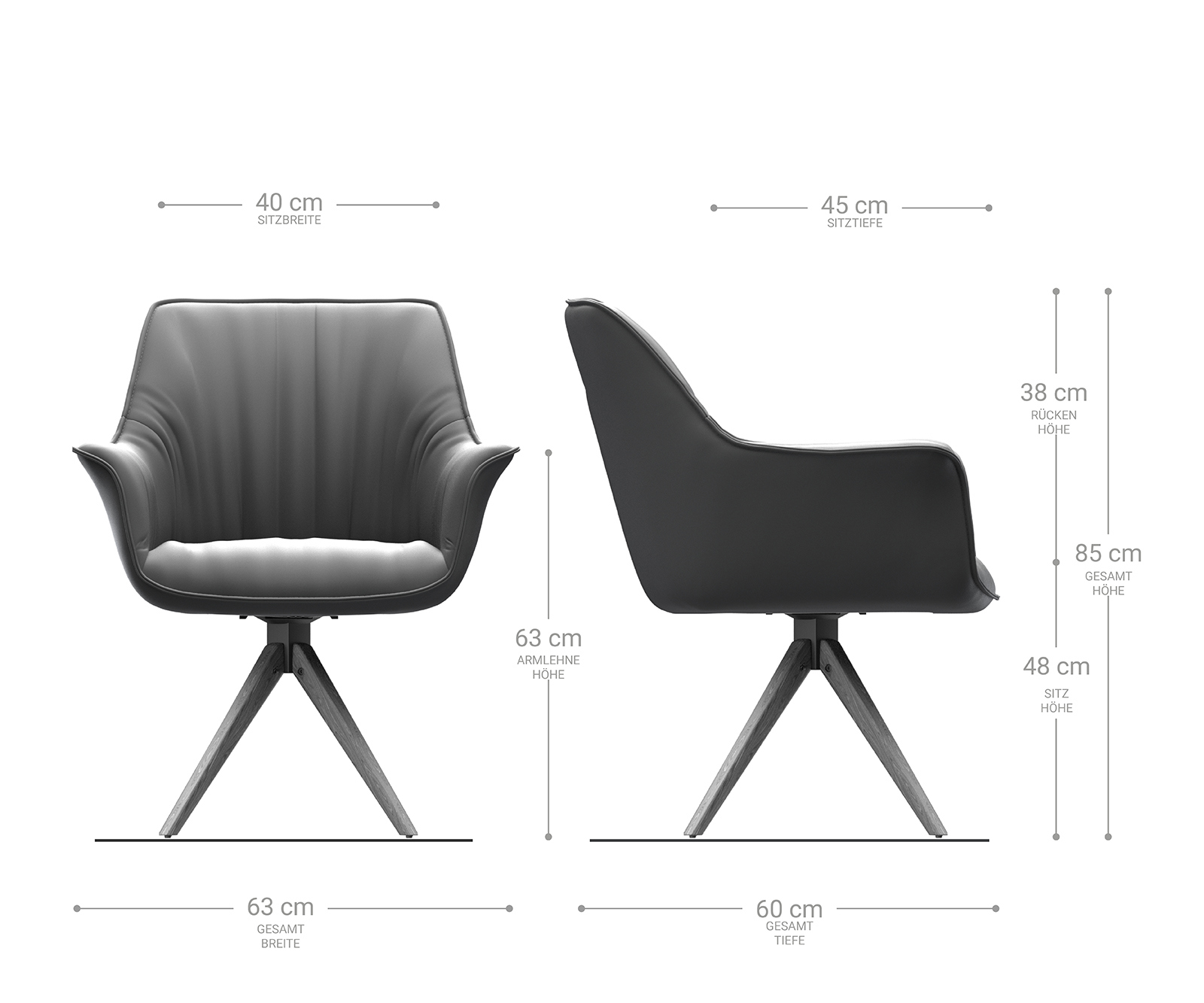A feltűnő kereszt lábazat a klasszikus megjelenést négy szögletes lábbal természetes könnyedséggel ötvözi. Akár 180 fokban forgatható, és praktikus visszahúzó funkcióval rendelkezik, amely kellemesebbé teszi az étkezőasztalnál folytatott beszélgetéseket.