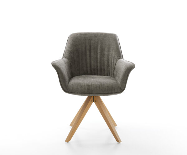 A feltűnő kereszt láb klasszikus megjelenést ötvöz négy szögletes fa lábbal, természetes könnyedséget sugározva. Akár 180 fokban forgatható, és praktikus visszahúzó funkcióval rendelkezik, amely kellemesebbé teszi a társalgást az étkezőasztalnál.