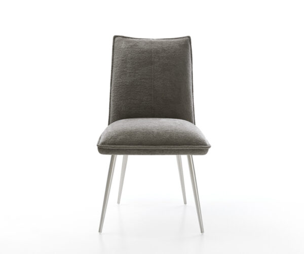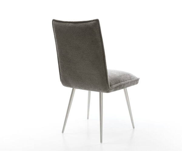 Ez az étkezőszék kiváló minőségű bouclé huzattal rendelkezik meleg sötét bézs (schlamm) árnyalatban. A finom struktúra és a nyugodt szín modern, otthonos kisugárzást kölcsönöz a bútornak – ideális az étkezőbe vagy az olvasósarokba.