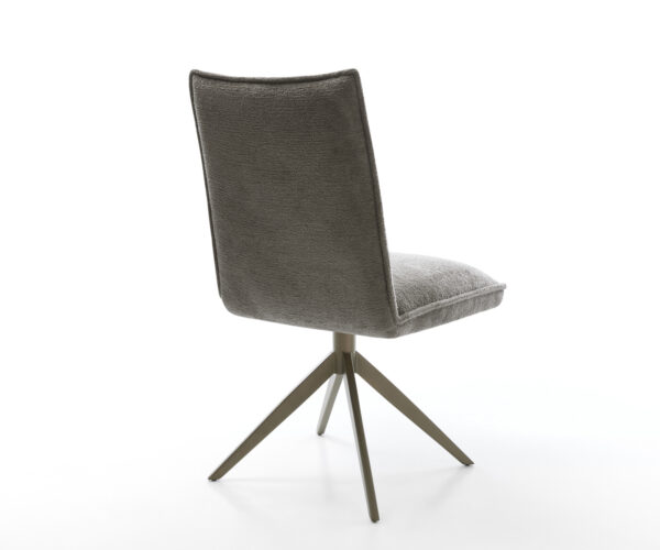 Ez az étkezőszék magas minőségű bouclé huzattal rendelkezik meleg sötét bézs (schlamm) árnyalatban. A finom struktúra és a nyugodt szín modern, otthonos kisugárzást kölcsönöz a bútornak – ideális az étkezőbe vagy az olvasósarokba.