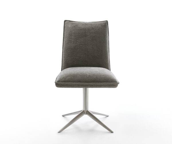 Ez az étkezőszék kiváló minőségű, meleg sötét bézs (schlamm) színű bouclé kárpittal rendelkezik. A finom struktúra és a nyugodt szín modern, otthonos kisugárzást kölcsönöz a bútornak – ideális az étkezőbe vagy az olvasósarokba.